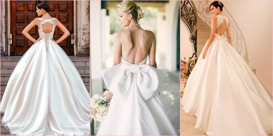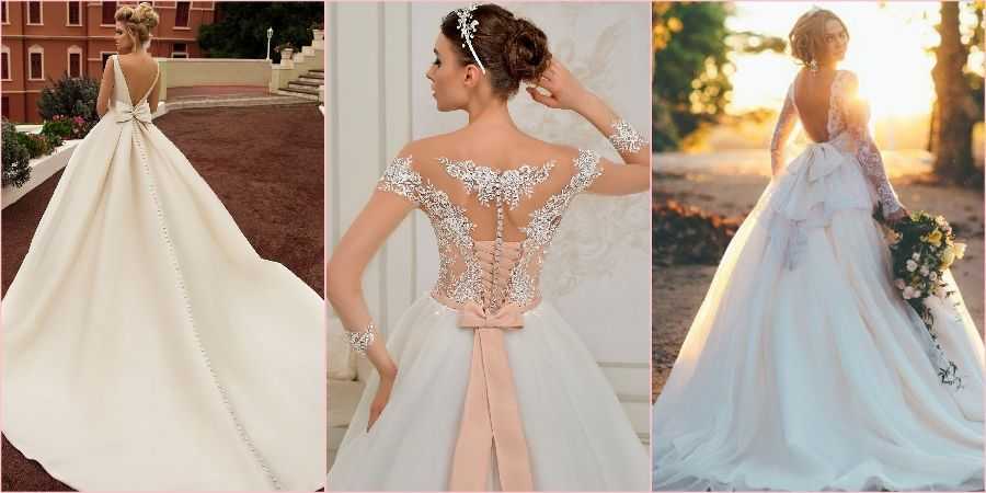 Еще один смелый вариант, для любительниц показать свою фигуру во всей красе. В таком случае лиф должен быть глухим, а вот вырез сзади абсолютно любым: небольшим, до талии или виднеющийся через прозрачную свадебную ткань.