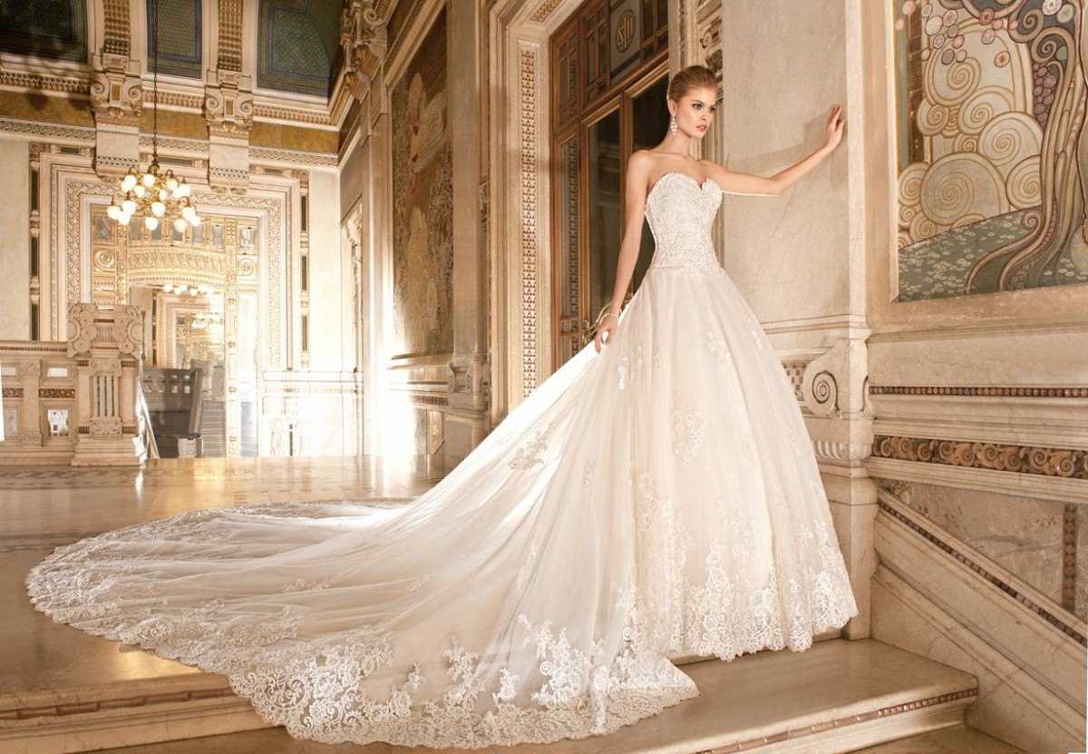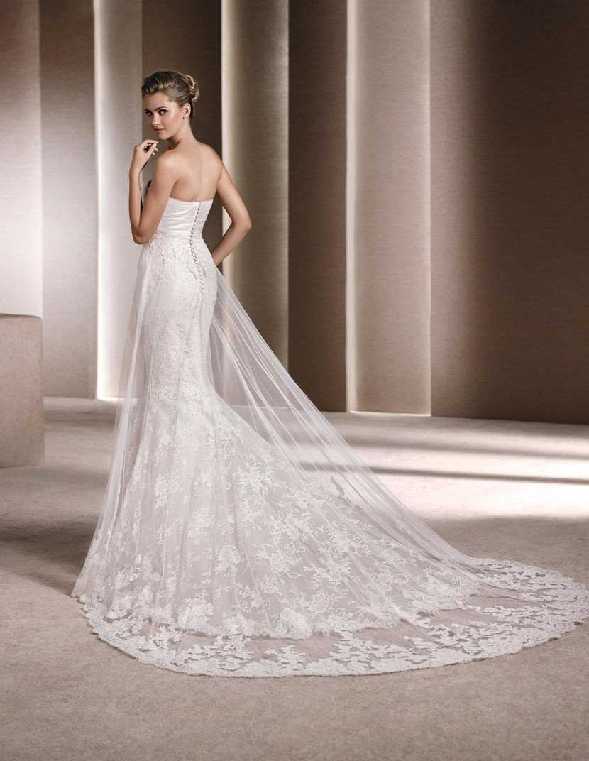 Свадебное платье с кружевным шлейфом