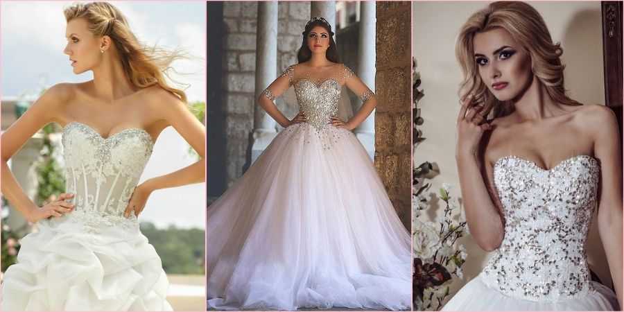 Чаще всего верх платья состоит из корсета в форме сердца или V-образного выреза. Менее откровенно смотрятся модели, где лиф украшен полупрозрачной тканью.