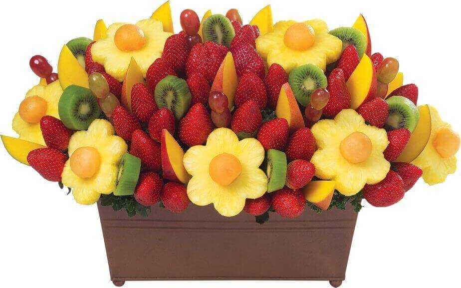 Когда вы научитесь изготавливать простые букеты из фруктов, можно поэкспериментировать и создать оригинальную композицию с помощью дополнительных ингредиентов.