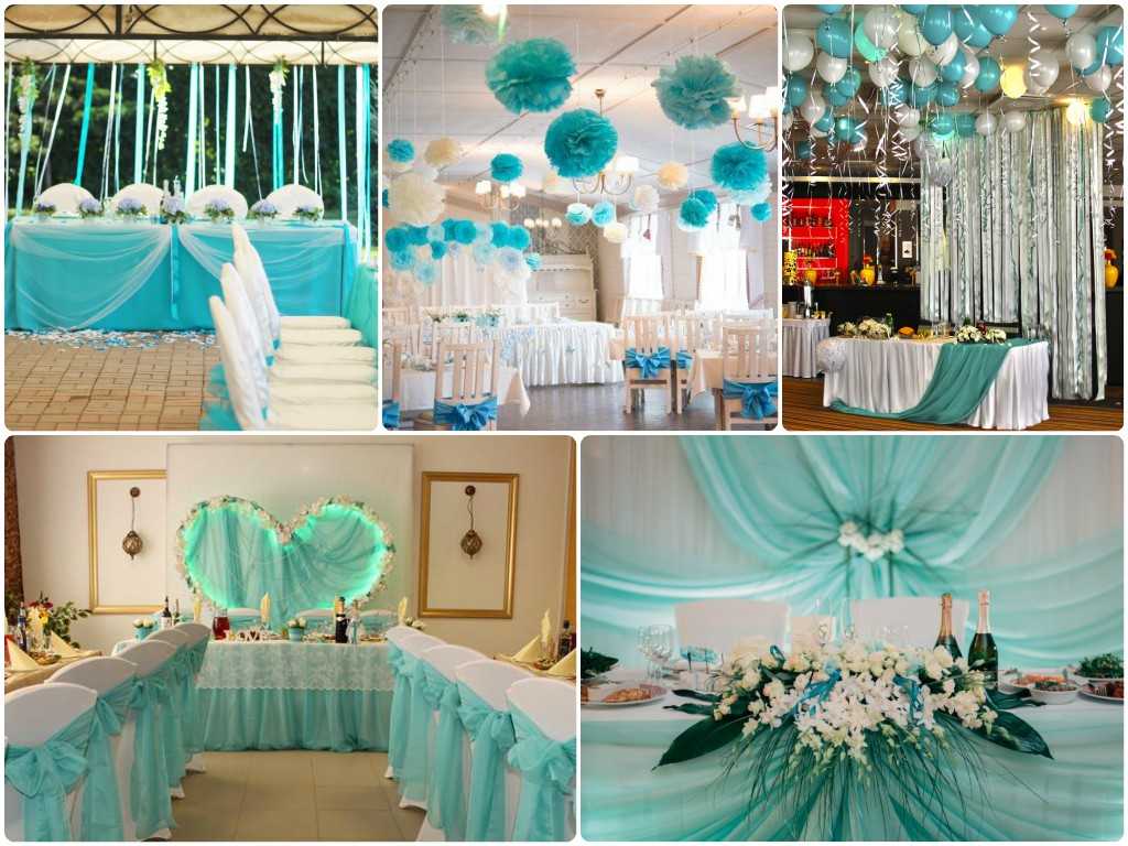 Пришло время задуматься о выборе конкретных декораций для оформления бирюзового свадебного зала.