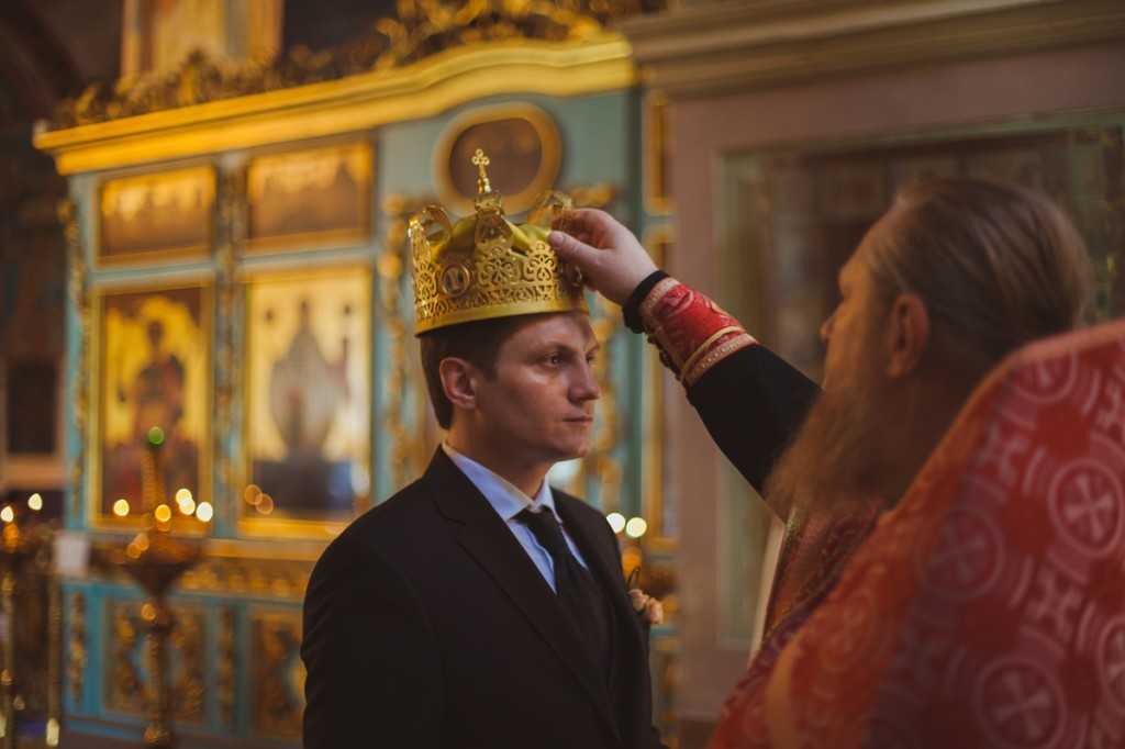 Наряд. Жених на венчании должен выглядеть серьёзно и мужественно, поэтому для этого случая идеален строгий костюм, брюки с рубашкой, водолазкой или свитером спокойных тонов. Предпочтителен светлый наряд, но жёстких требований к цвету нет. Разумеется, повседневная одежда спортивного типа, шорты и джинсы — в церкви абсолютно недопустимы.