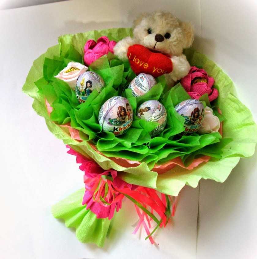 Если у вас есть маленькая родственница, ей будет приятно получить целую корзину ярких, красочных цветов с сюрпризом внутри. Как сделать сладкий букет для девочки своими руками расскажет пошаговая инструкция с детальным описанием.