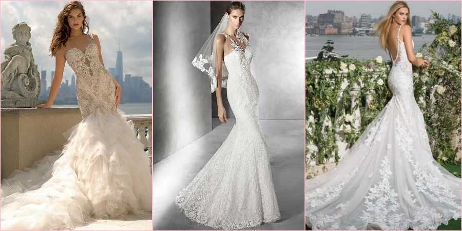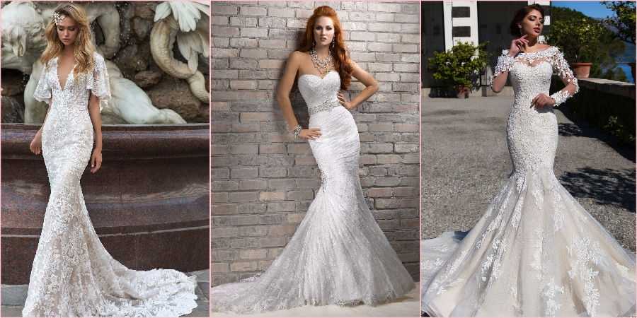 Если невеста не хочет полностью ажурный фасон «Рыбки», а желает лишь добавить немного этой благородной ткани в свой образ, то можно найти модели, где данным элементом украшены отдельные части, например, рукава, лиф, спина или юбка.
