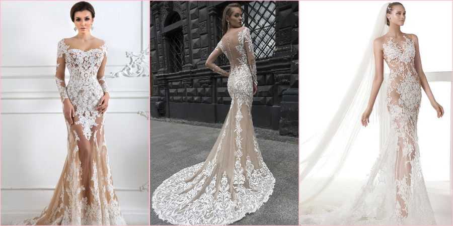 Совет. Для смелых новобрачных дизайнеры специально приготовили изделия из полупрозрачного кружева, которое закрывает лишь пикантные места фигуры. Такой стиль получил название бельевого и является одним из самых модных на свадьбу на сегодняшний день.
