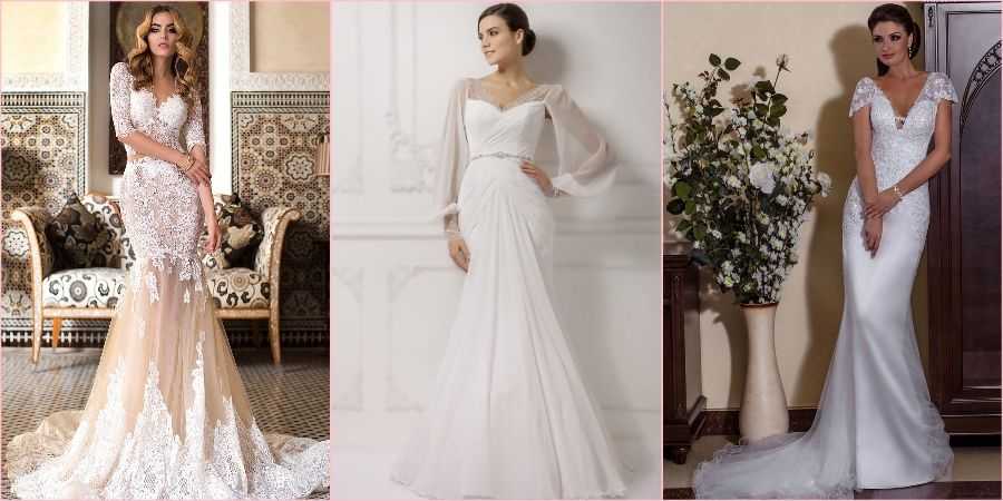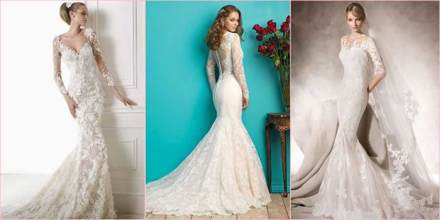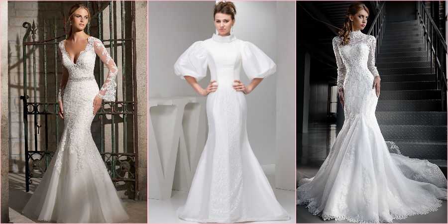 «Русалка» с рукавами выглядит немного скромнее и сдержаннее, но от этого не теряет своей женственности, наоборот, придает образу изюминку и загадочность.