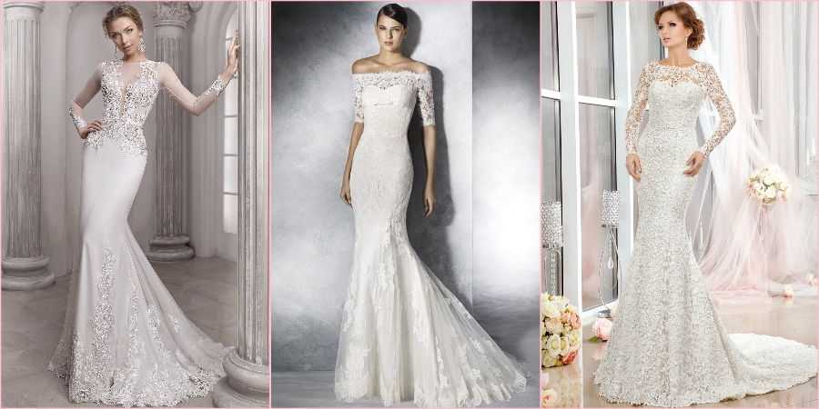 Самыми модными считаются кружевные длинные рукава, что, кстати, прекрасно подойдет на венчание.