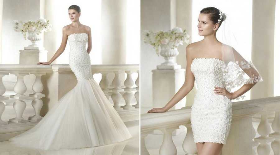 Еще один свадебный вариант для барышень, которые хотят совместить длинное платье с коротким.