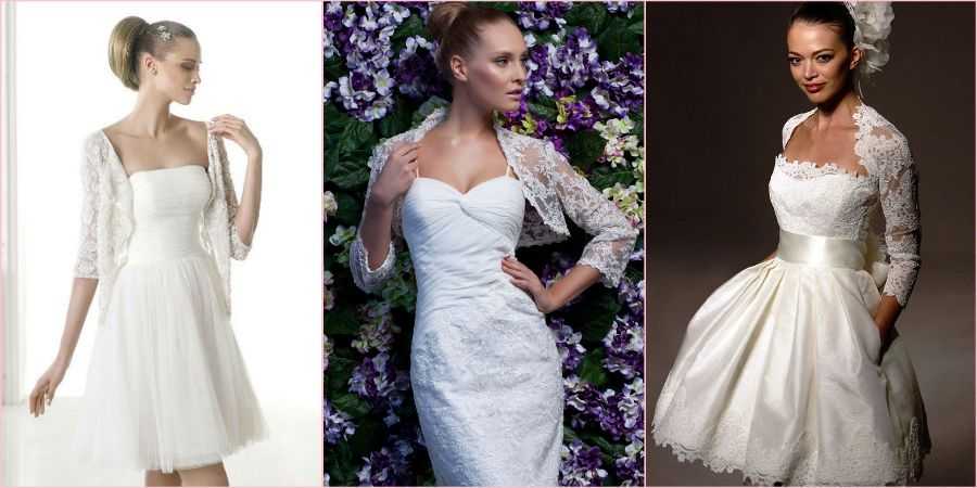 С рассматриваемыми нарядами прекрасно будет надеть болеро – это очень короткий жакетик, длина которого может доходить до талии. На свадьбу изготавливают обычно из тонкого материала, например, тюля, шифона и кружева либо из плотного: атлас, бархат и др.