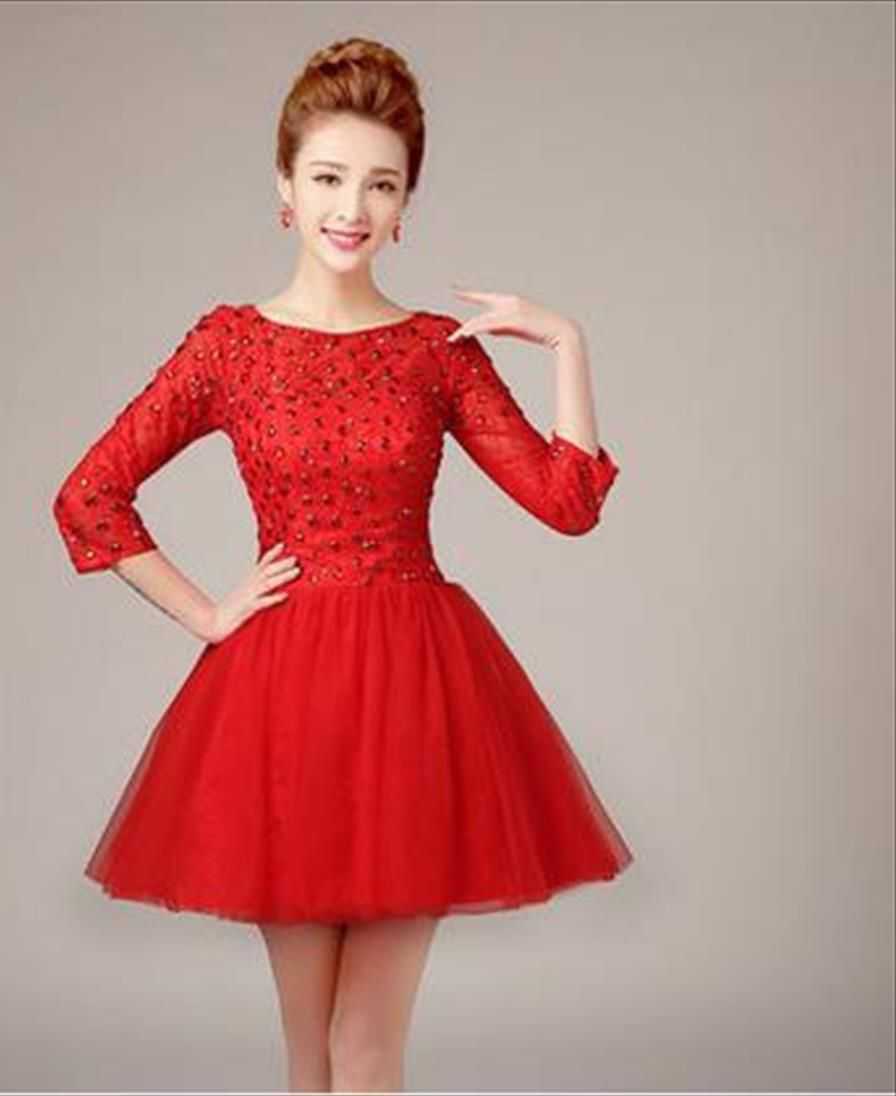 Привлекателен фасон красного свадебного наряда длины мини. Платье выглядит игриво, создавая кокетливое настроение. Популярностью пользуются модели, напоминающие наряды 50-х. Короткая длина приемлема для невест, желающих продемонстрировать стройные ножки.