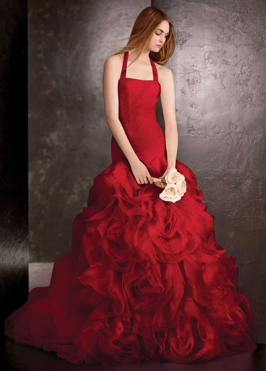- Красное свадебное платье испокон веков на Руси девушки выходили замуж в красных, богато расшитых сарафанах, считалось, что оно защищает невесту от порчи и негативного влияния плохих людей. Кроме того, красный цвет является символом зрелости и мудрости невесты.