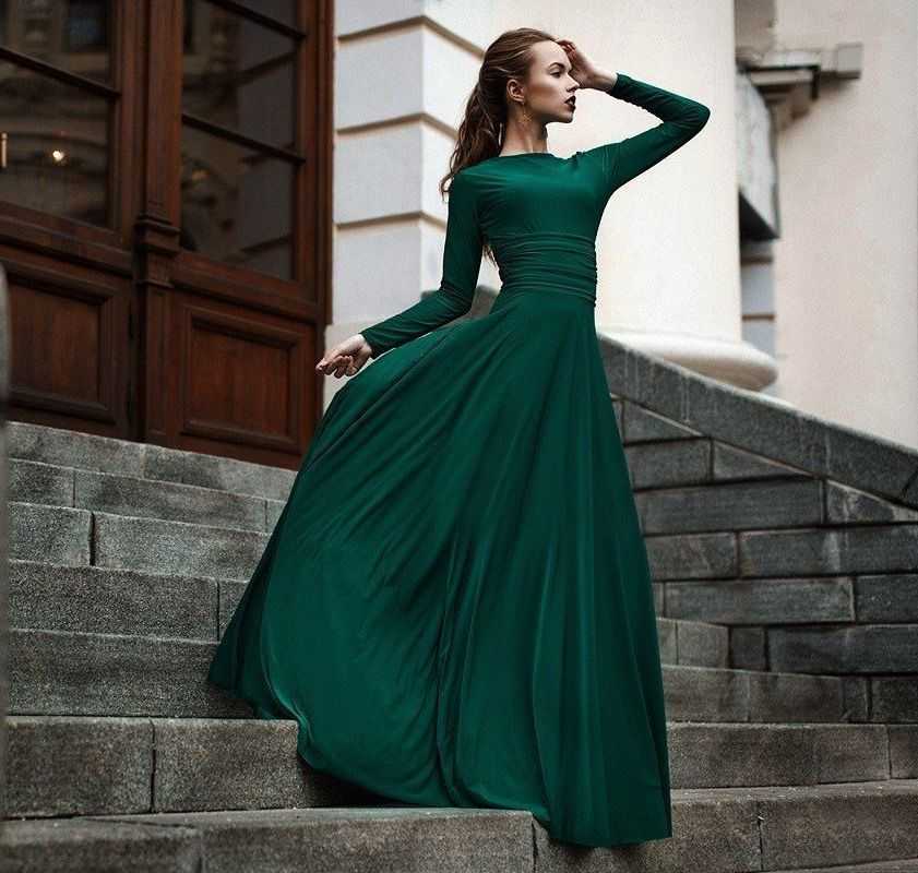 Яркие цвета также не исключают закрытый фасон. Так, красный цвет превратит образ в роскошный и утончённый.