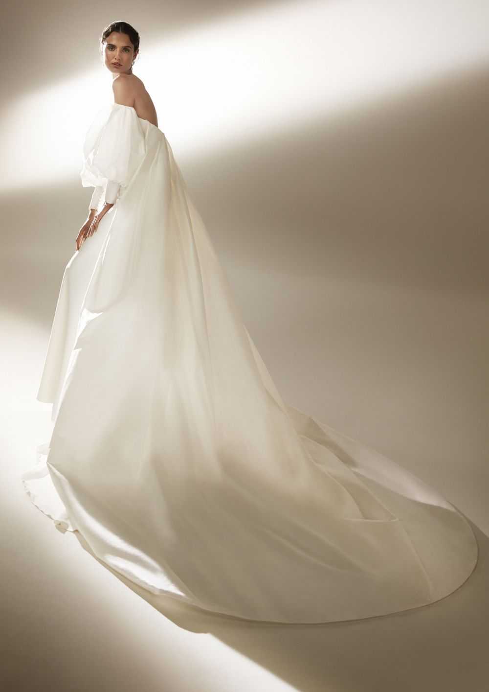 Помимо довольно классических силуэтом в коллекции встречаются смелые платья с многоярусными юбками. Такие варианты будут особеено выразительно смотреться на свадебных фотографиях.