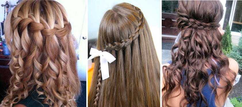 Всегда актуальны различные косы и плетения. Наиболее легкие варианты – это обычная французская коса или колосок. Можно совместить некоторые варианты и получить уникальный результат. Очень нежно и романтично смотрится «французский водопад». Сделать такую красивую прическу, фото которой можно посмотреть на нашем сайте, совершенно не сложно. Плетение самой косы может быть односторонним, двухсторонним или оно может покрывать всю голову. Для выполнения такого варианта совершенно не нужны, какие либо дополнительные приборы или средства для укладки. Для получения гламурного эффекта, свободные локоны можно завить.