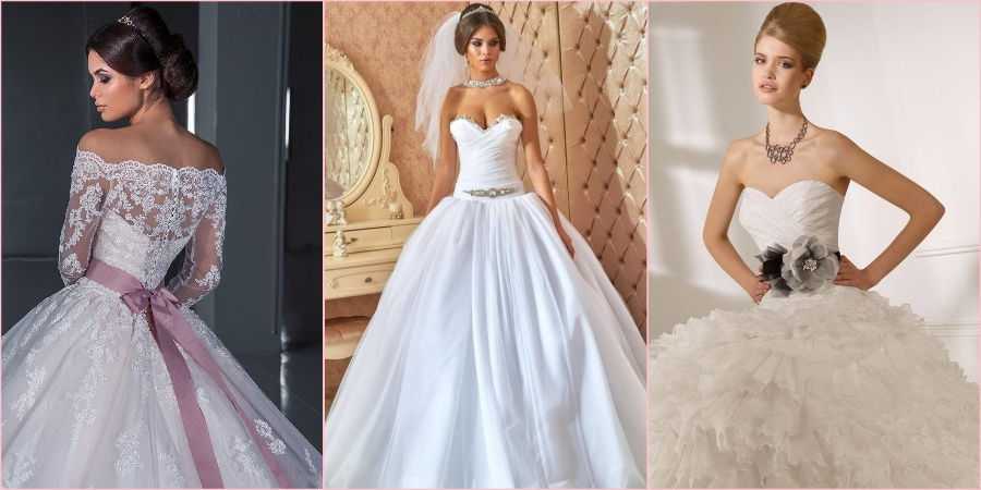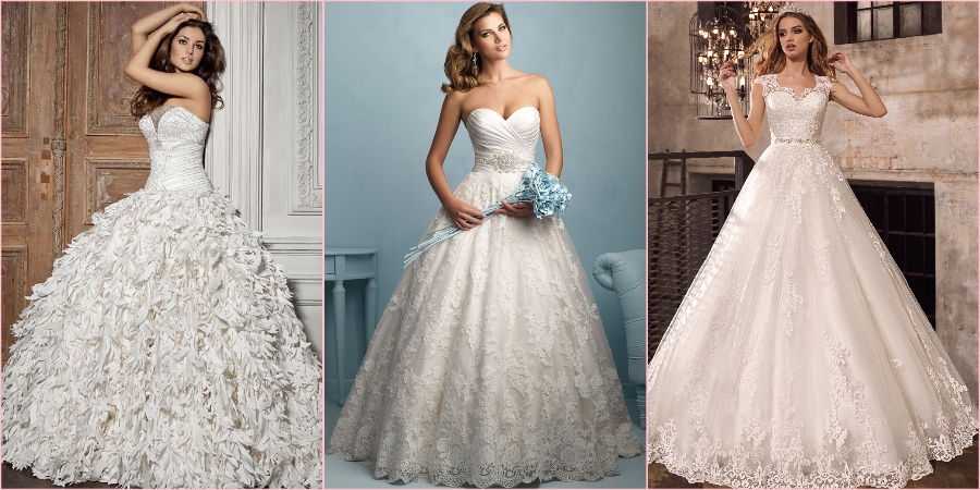 - Бальное платье выгодно преподнесет фигуру новобрачной – корсет стянет талию и приблизит ее к идеальной, а грудь, наоборот, подчеркнет, объемная юбка прикроет недостатки, пышность же добавит торжественности.