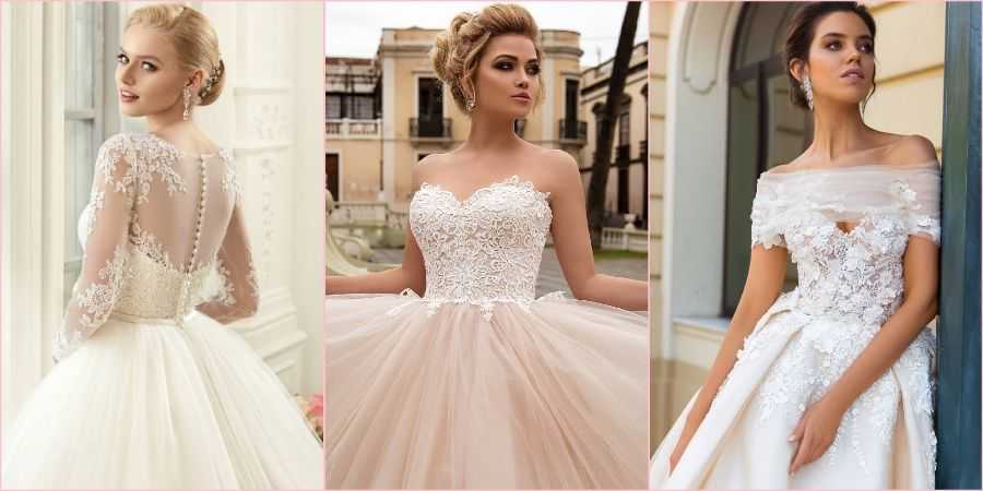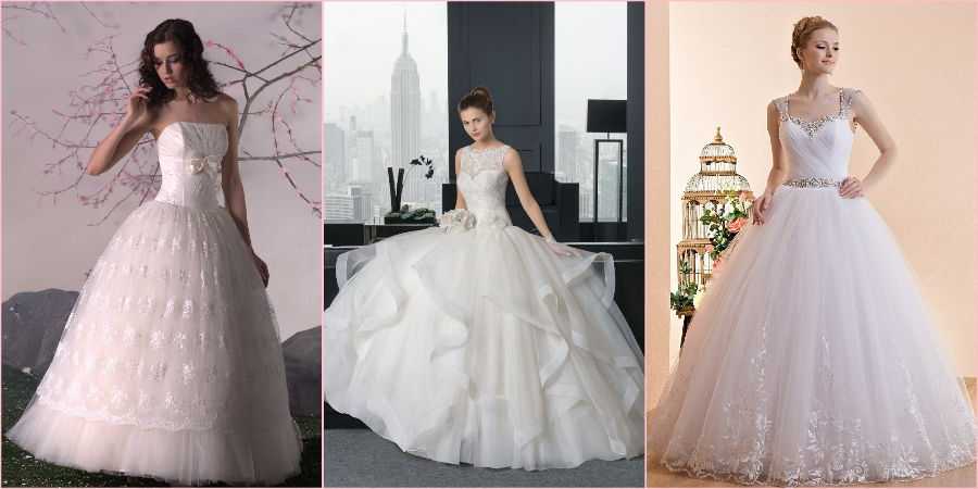 Совет. Пышные фасоны прекрасно будут смотреться на любой фигуре, за счет удачного легкого материала, который приблизит каждый силуэт к идеальному. Полненькие новобрачные станут визуально стройнее, а худенькие и вовсе превратятся в миниатюрных дюймовочек.