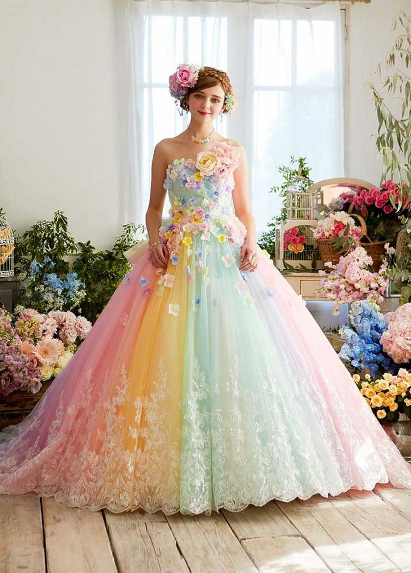 Невеста в белом платье кажется вам скучной и слишком традиционной? Тогда смело выбирайте свадебные платья 2020-2021 синего, мятного, розового или желтого цвета.