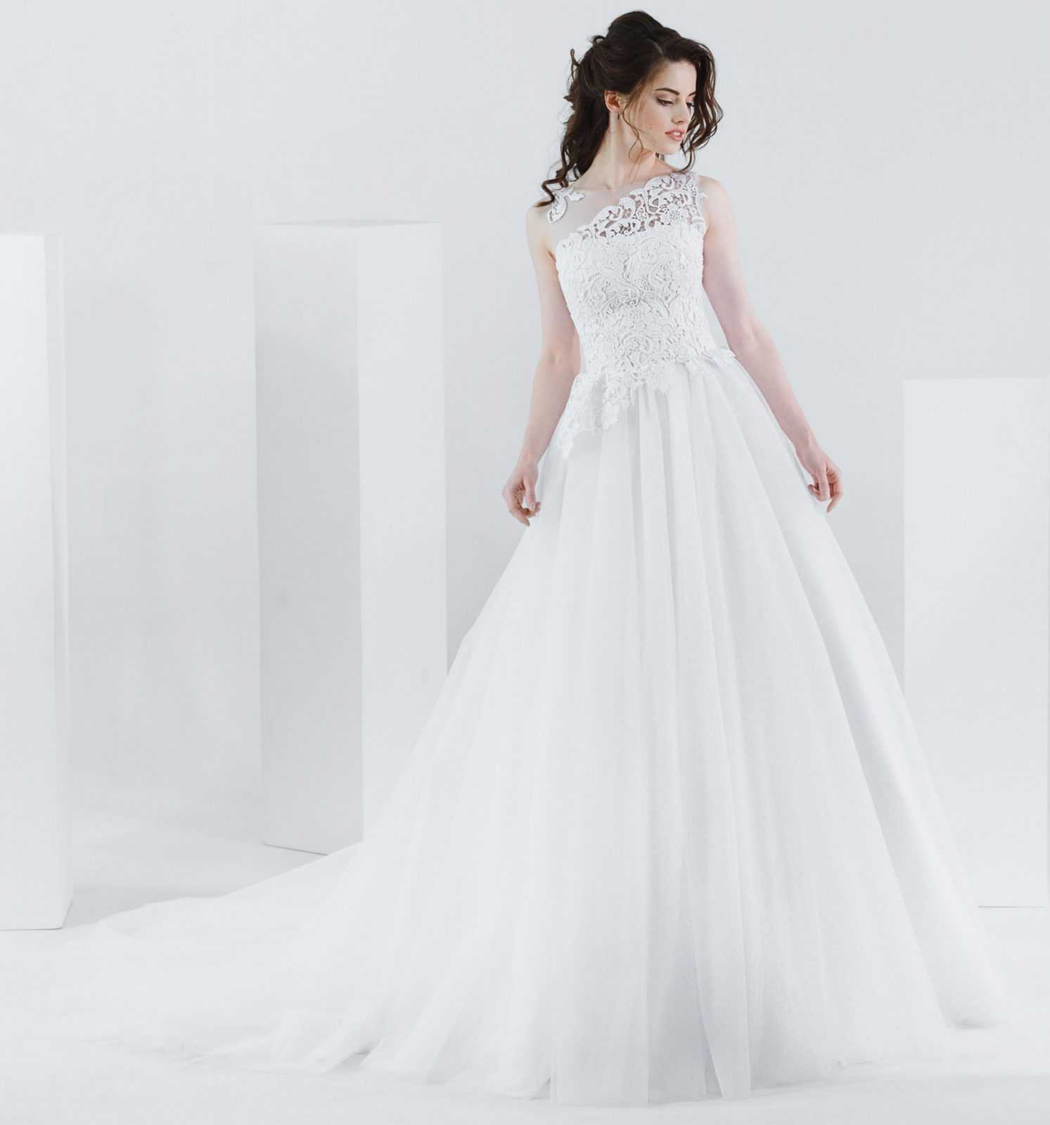 Изящное с тонким корсетом, расшитым пайеткой-слюдой, подчёркивает настоящую красоту кружева. Нежная юбка из сеточки заканчивается небольшим шлейфом. Атласная ленточка, цвет которой вы выберете при заказе наряда, покажет всем вашу красивую талию. Платье уникально, прекрасно смотрится как на худеньких девушках, так и на plus size.