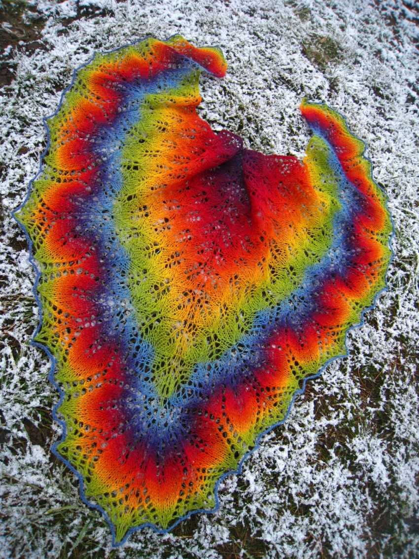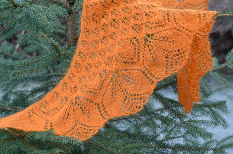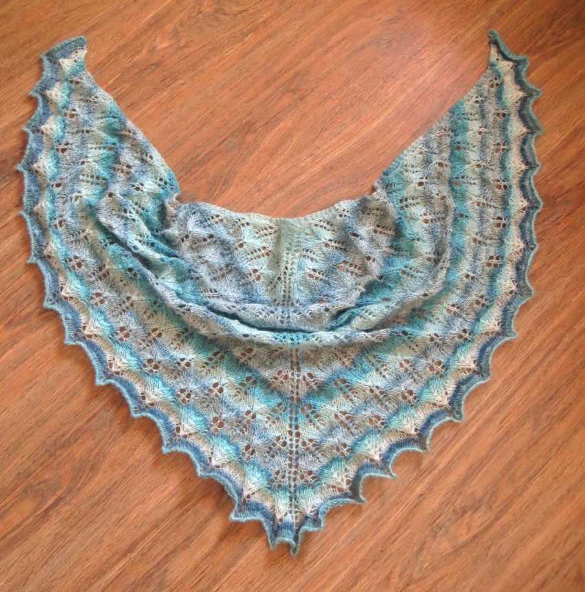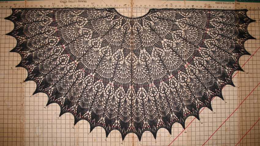 Готовую шаль увлажнить и высушить на ровной поверхности.