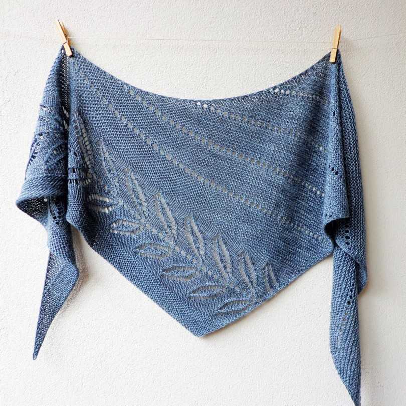 Шаль «Листики». Синяя шаль связана из Кроссбред Бразилии от Пехорки (50% мериносовая шерсть / 50% акрил, 500м/100гр) цвет — ультрамарин №491, ушло 1,5 клубка. На втором фото шаль связана из Brilliant от Vita (45% шерсть, 55% акрил,