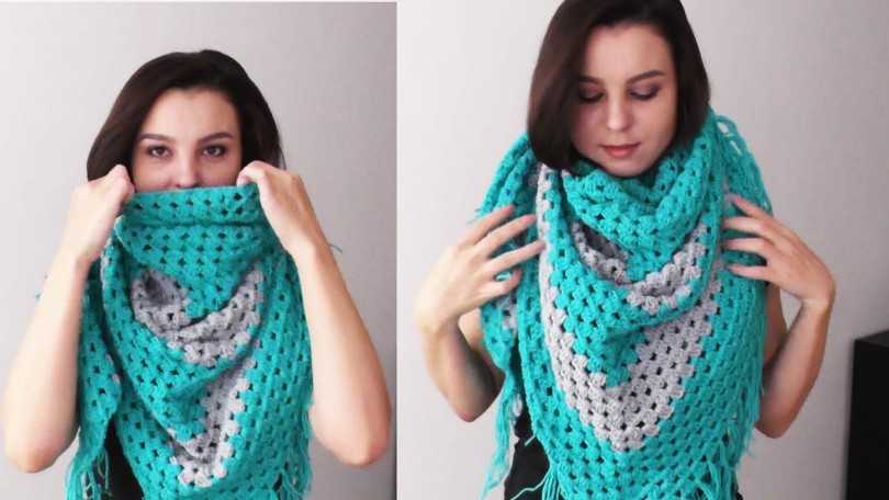 Такую простую и симпатичную модель шали мы будем вязать крючком