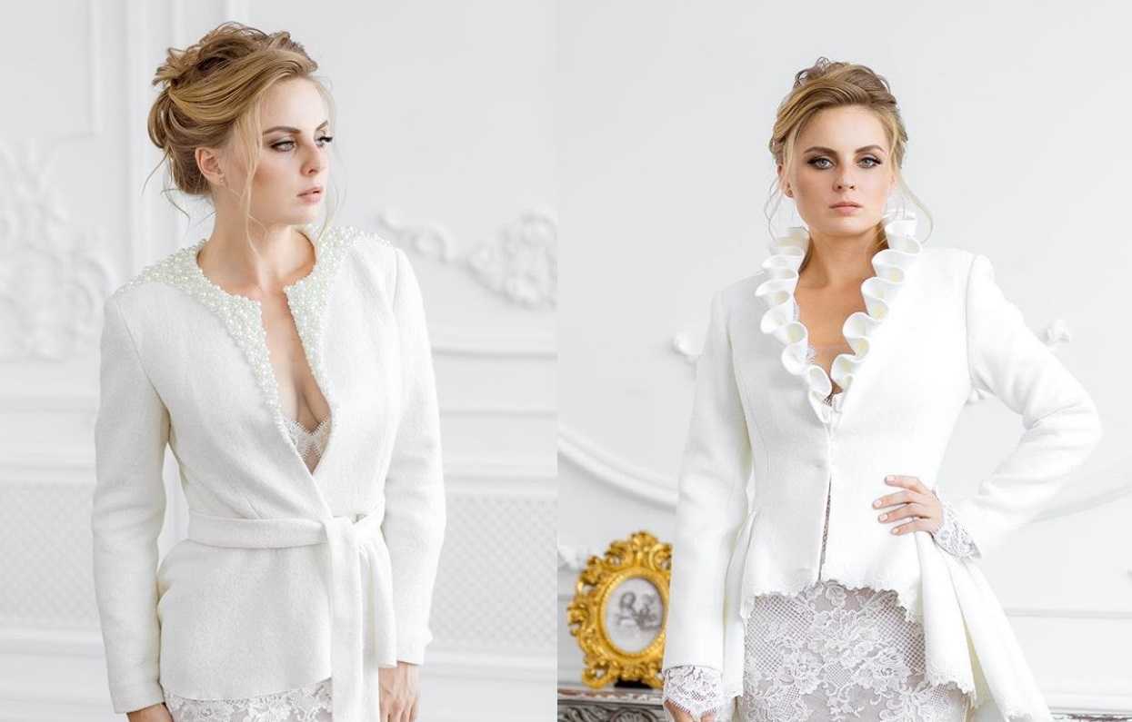 - Присмотритесь к практичным моделям, которые можно носить после свадьбы: вязаные накидки, короткие светлые куртки и пальто;