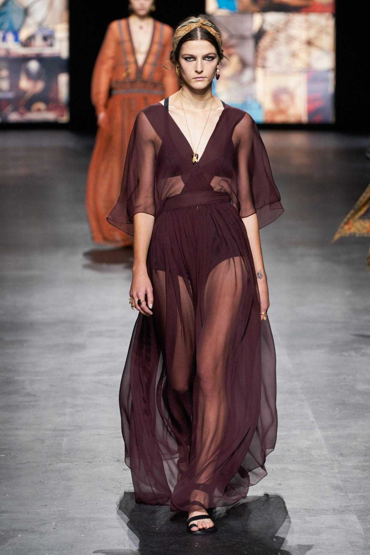 Изделие может быть свободным, приталенным или с асимметричным кроем. Длина, предложенная модными домами, – миди и в пол.