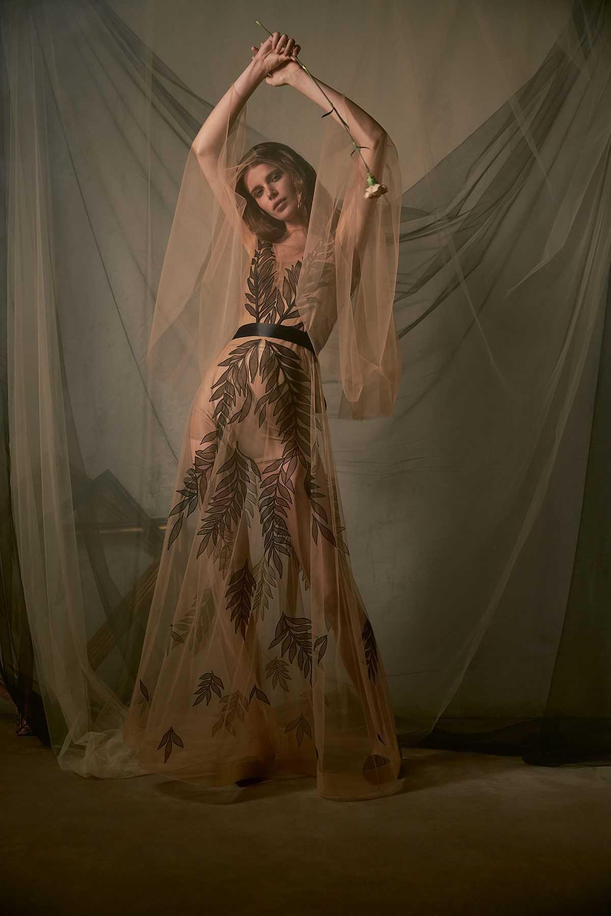 Облегающий верх плавно переходит в расширяющийся подол. Для того чтобы сохранить подобную пропорцию, используют принцип многослойности тканей или плотный каркасный подъюбник, на который выкладывается верхний слой материи.