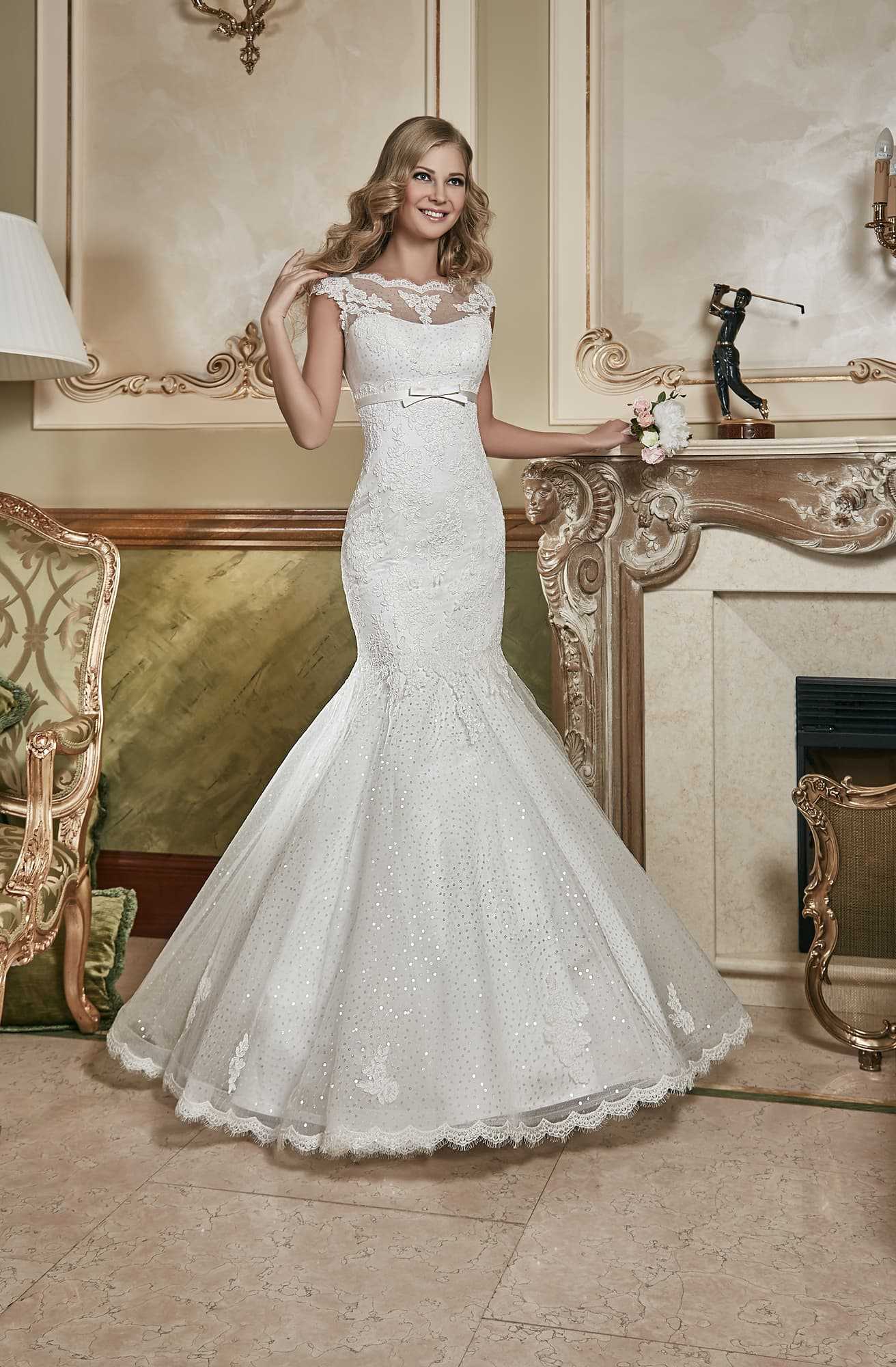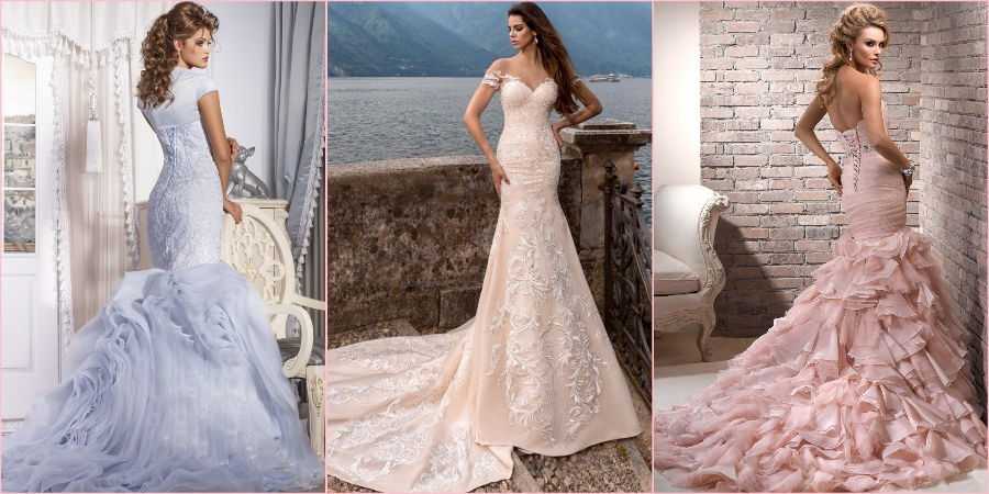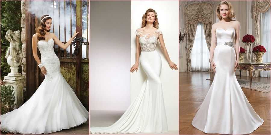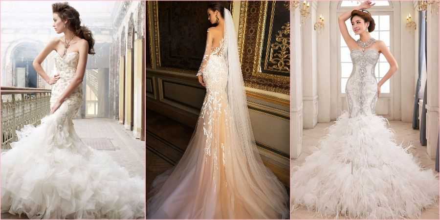Фасонов платья рыбка существует великое множество, если вы хотите выглядеть на свадьбе по-королевски, обратите внимание на следующие. Со шлейфом
