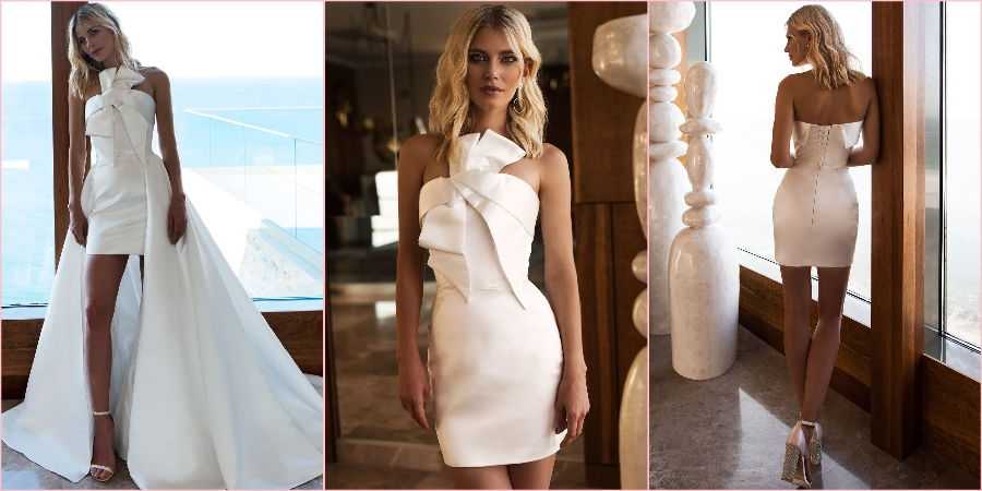 Но не стоит отказываться от своих желаний, модельеры позаботились обо всех и придумали фасоны со съемным шлейфом. В ЗАГСе можно появиться в наряде с шикарным подолом, а на прогулку убрать его, гости непременно оценят оба образа новобрачной.