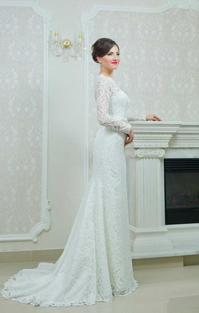 Часто наряды фасона Русалка шьют с открытой линией плеч. Но иногда более уместной будет модель с длинными рукавами. Такой вариант добавит образу невесты изящества, сделает его более хрупким и утонченным.