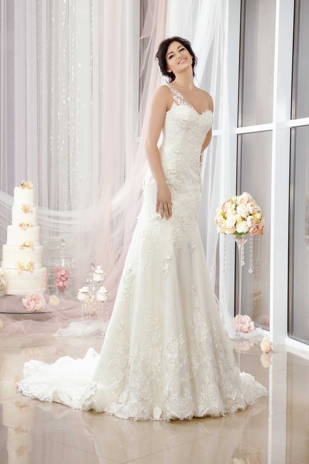 С бретелями. Этот фасон часто выбирают для летней свадьбы. И выглядит он так же красиво, как и остальные. Тонкие бретели сделают образ более соблазнительным. Однако невестам с пышными формами стоит выбирать широкие бретели, чтобы не лишать образ женственности и изящности.