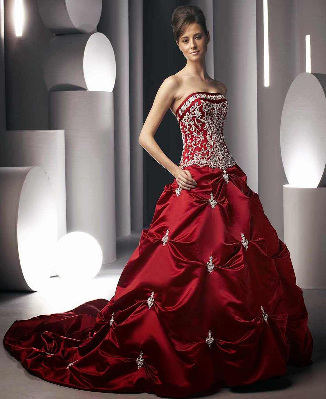 Наиболее гармоничным сочетанием считаются наряды с преобладанием бело красных или красно черных оттенков. Благодаря своему контрасту, красно белые платья не утрачивают популярности у невест на протяжении многих лет.