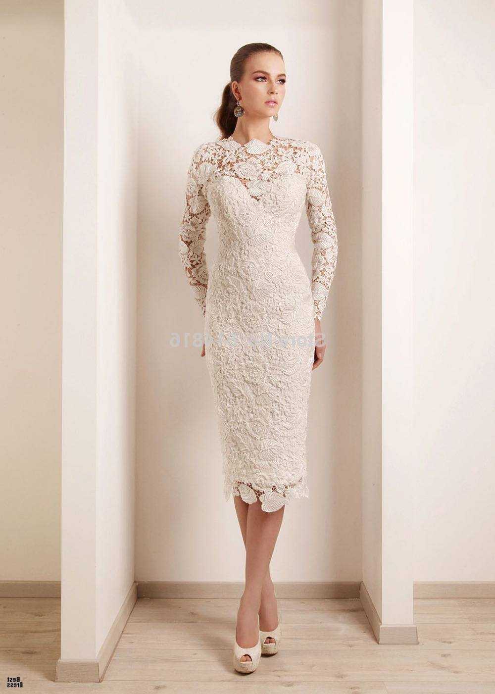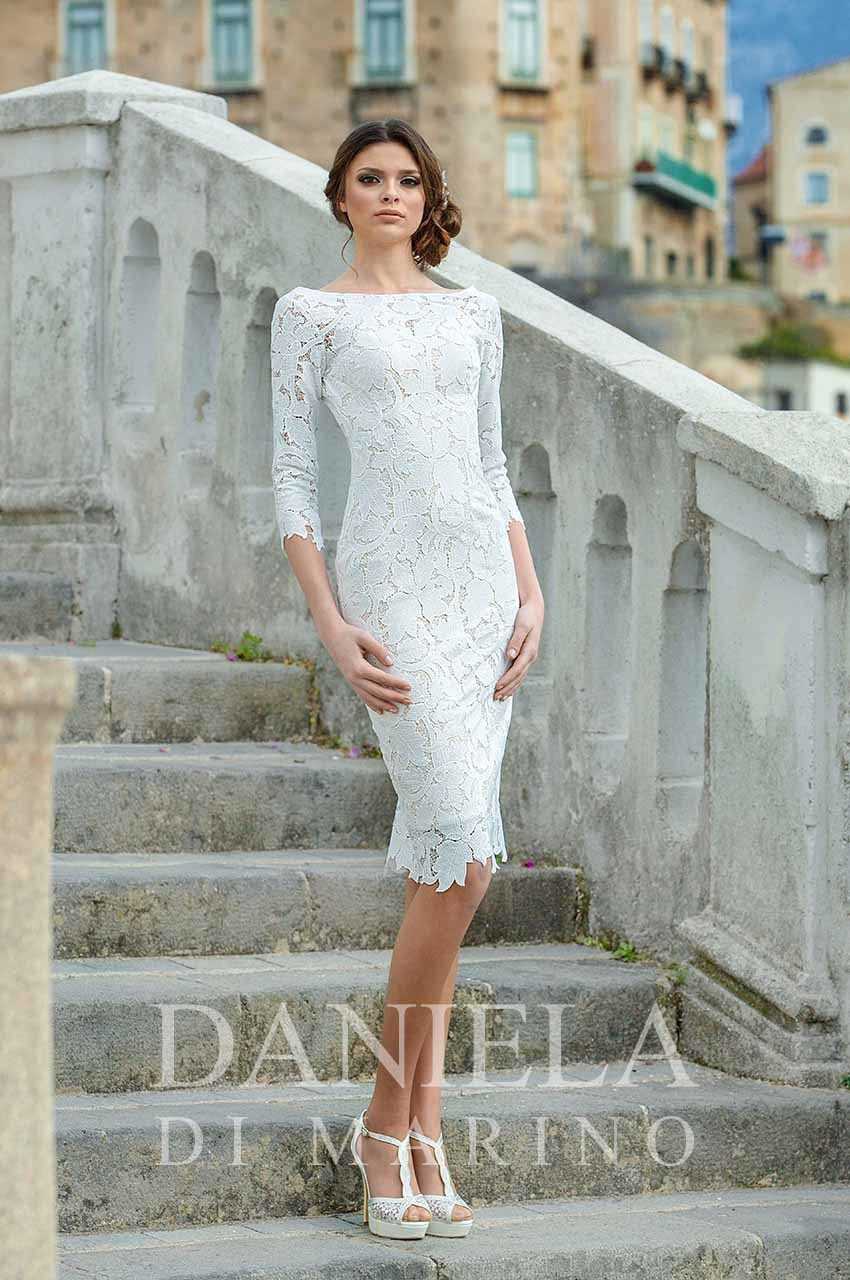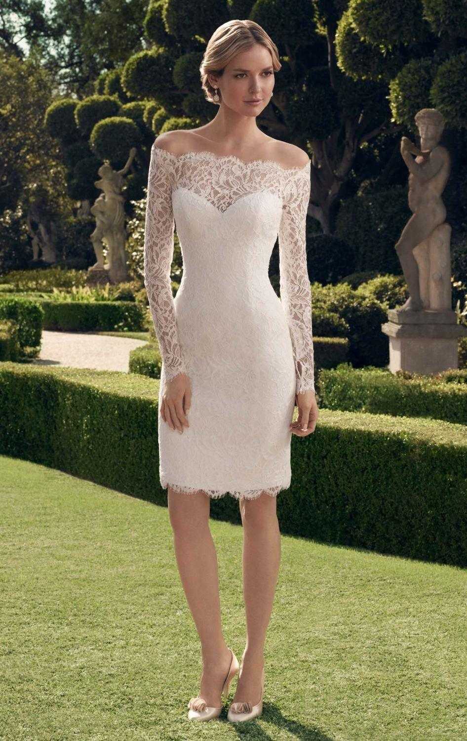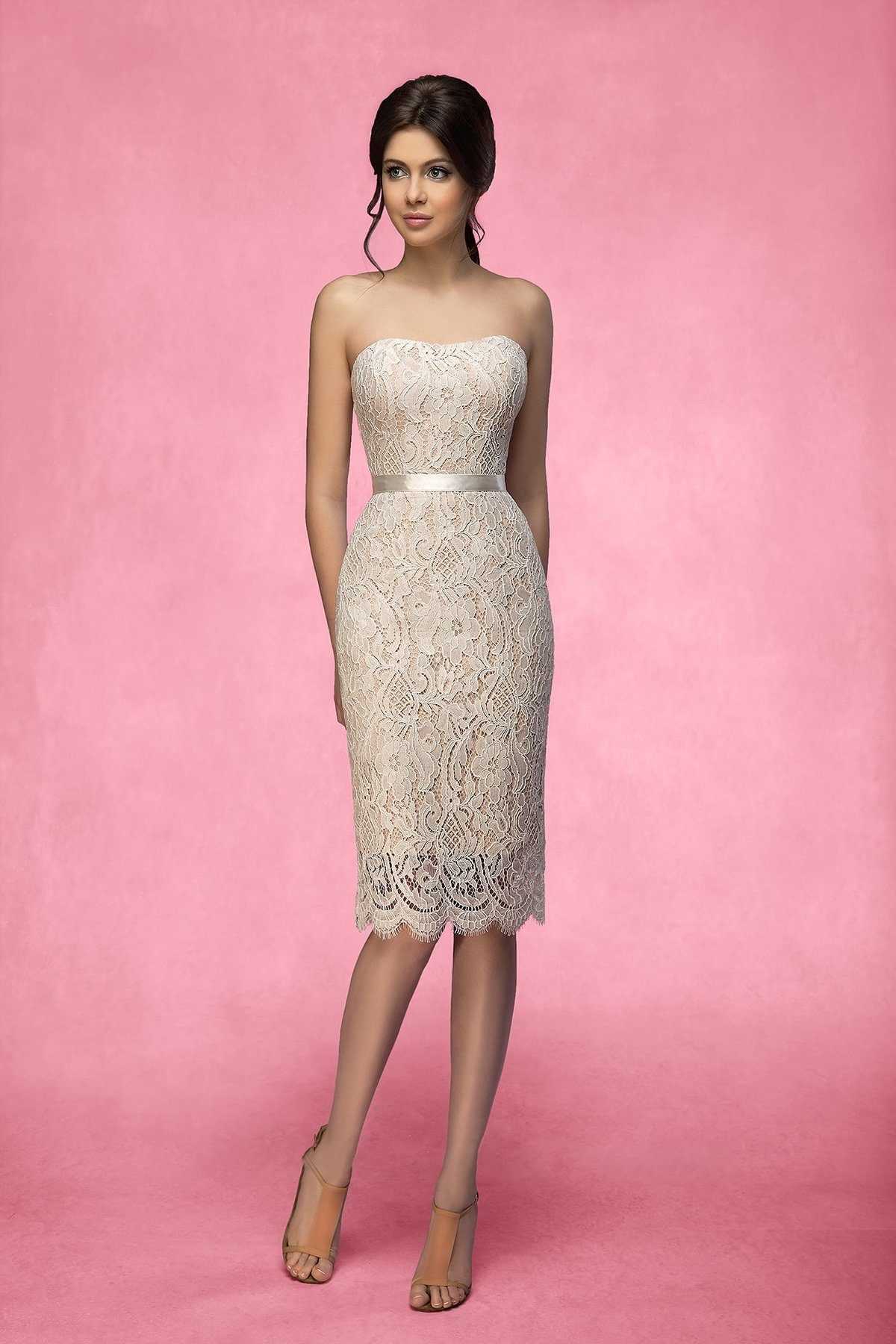 Короткое кружевное свадебное платье: нежная модель “футляр”