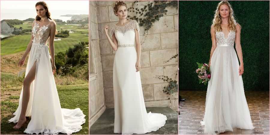 Шокировать и эпатировать необычными подвенечными нарядами у невест в грядущем году нет необходимости. В моду возвращаются классические фасоны и ткани: прямые и пышные платья, по-королевски роскошные и сдержанные, сделанные из тафты, органзы, шифона, атласа. Платье может украсить модный квадратный вырез, красивый и дорогой декор в виде жемчуга или камней, цветочные принты и аппликации. Однако, один тренд остается с нами — в первую очередь, платье должно подходить фигуре и внешности молодой.