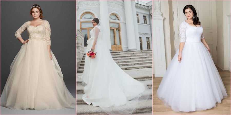Будут хорошо смотреться платья с V-образным вырезом, корсетом и пышной юбкой. Если хочется платье с рукавами, то они должны быть длиной не меньше, чем 3/4