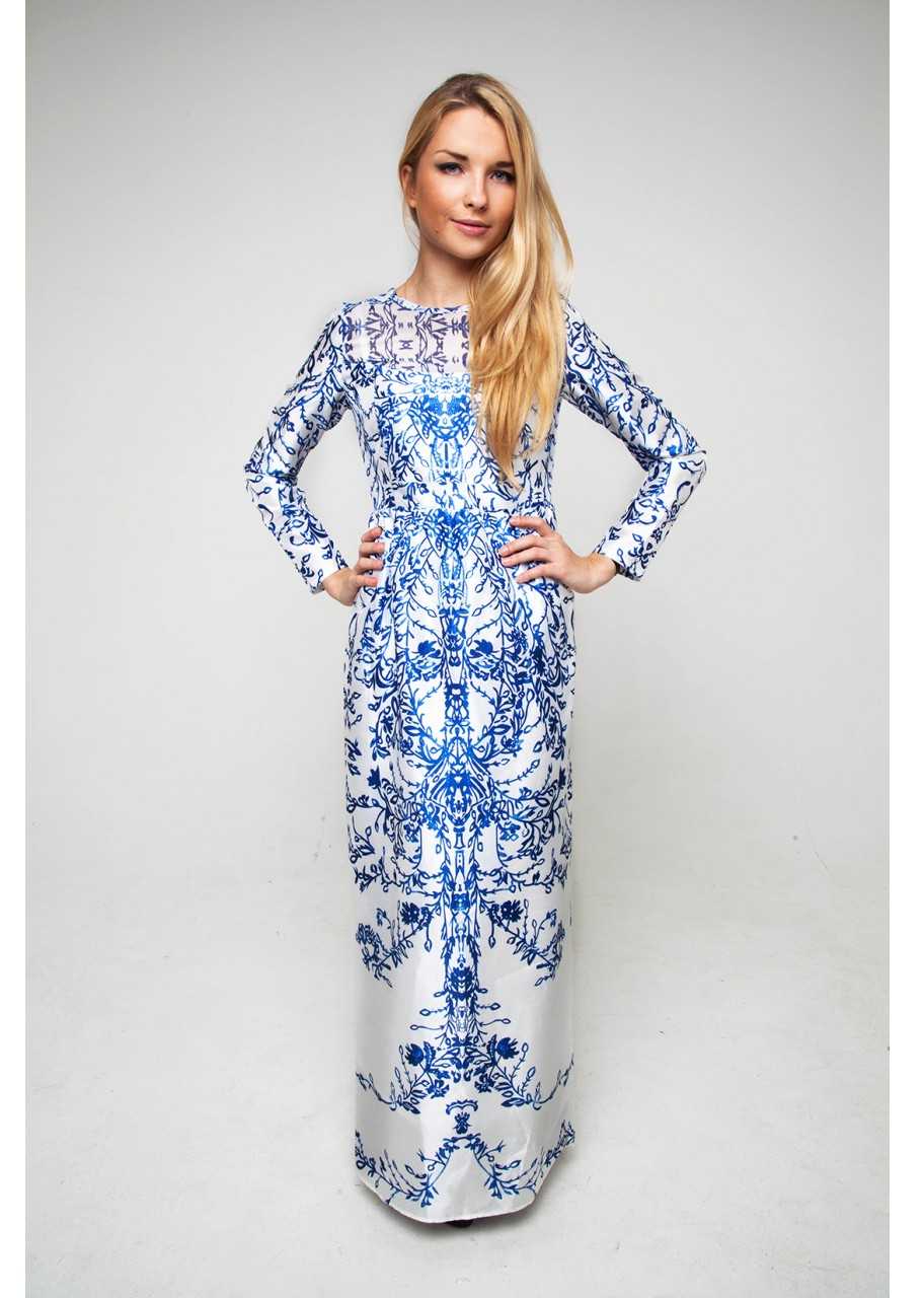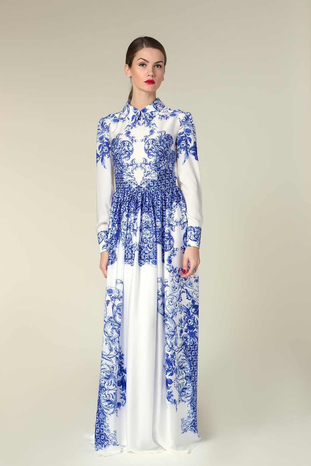 Стоит отметить, что модели с длинным рукавом чаще выполняются из одного материала, который может иметь ровную гладкую текстуру или обладать выбитым рисунком. Красиво выглядят модели с юбкой тюльпан или пышным низом, в котором четко видна талия. Силуэт выглядит поистине королевским! В качестве украшения можно подобрать красивое ожерелье.