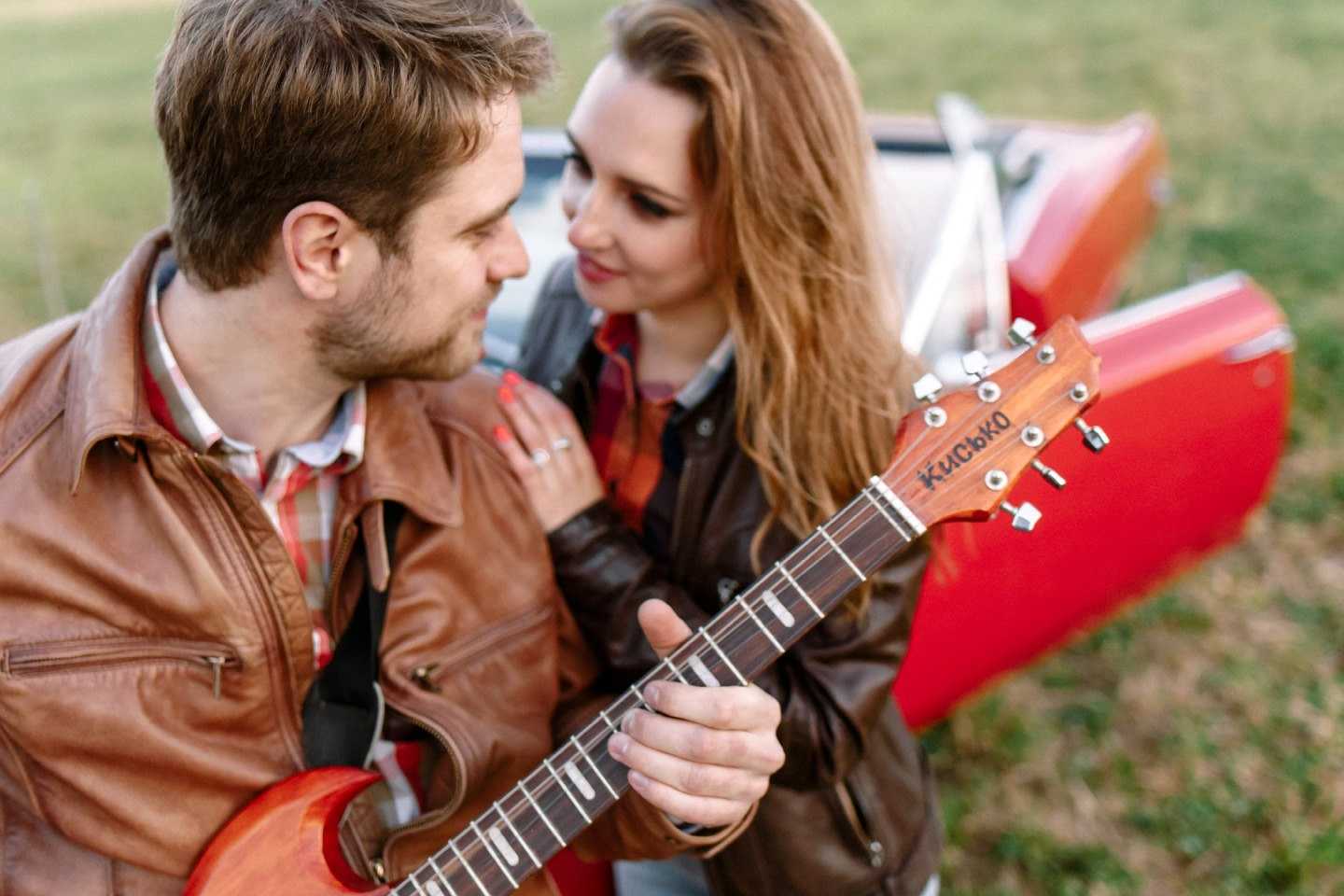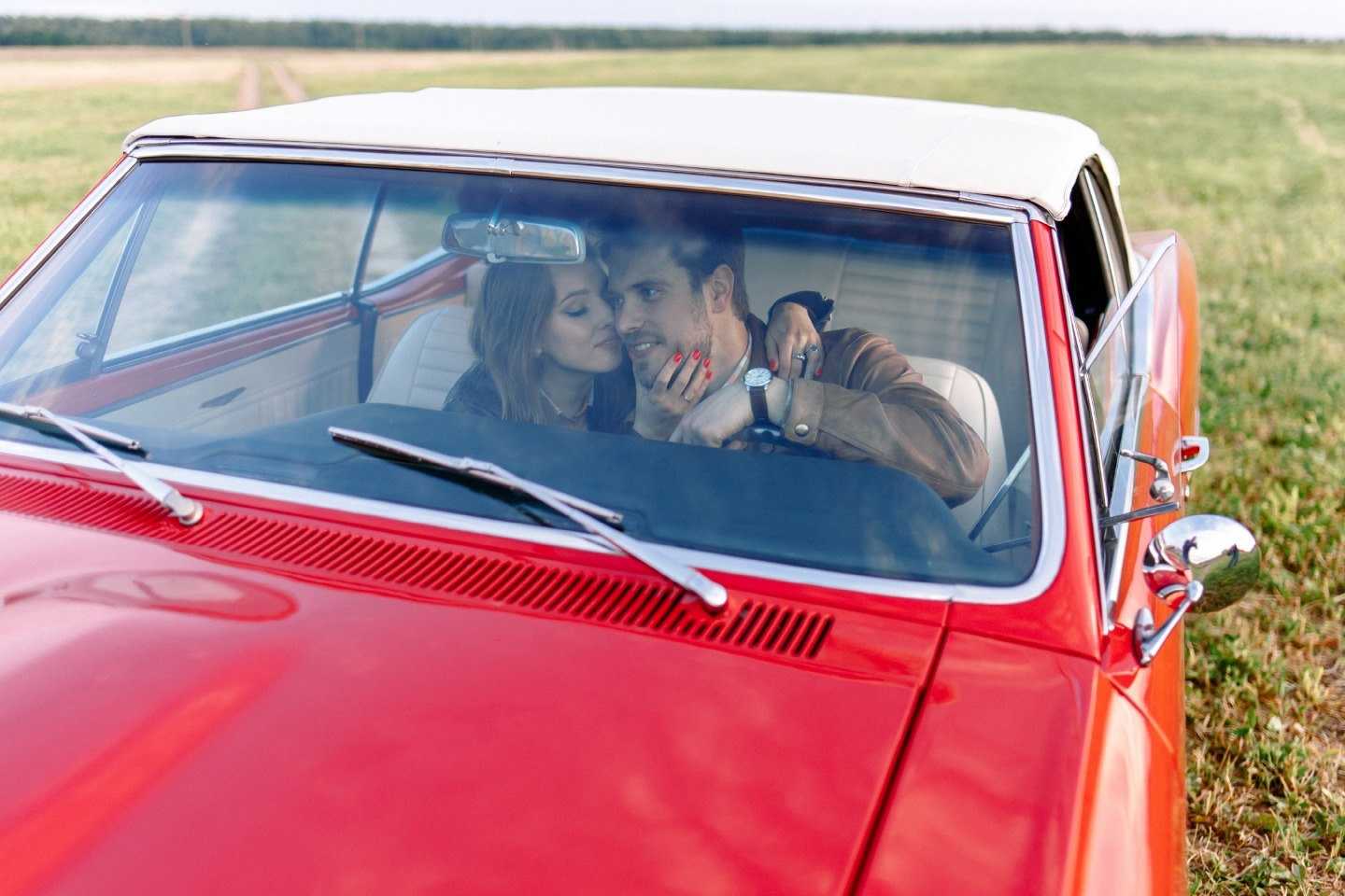 До того, как Женя сделал предложение, мы были вместе четыре года. А свадьбу решили сыграть на пятилетнюю годовщину. История с предложением руки и сердца получилась забавной. Мы поехали в отпуск на Сицилию. Был прекрасный солнечный день, в планах было посетить вулкан Этна. По Сицилии мы перемещались на арендованном автомобиле, и я все пыталась поймать удачный кадр вулкана из окна машины. В один прекрасный момент Женя берет у меня телефон и пытается сделать фото из своего окна, но в этот момент мы слышим звук «хряяясь»…