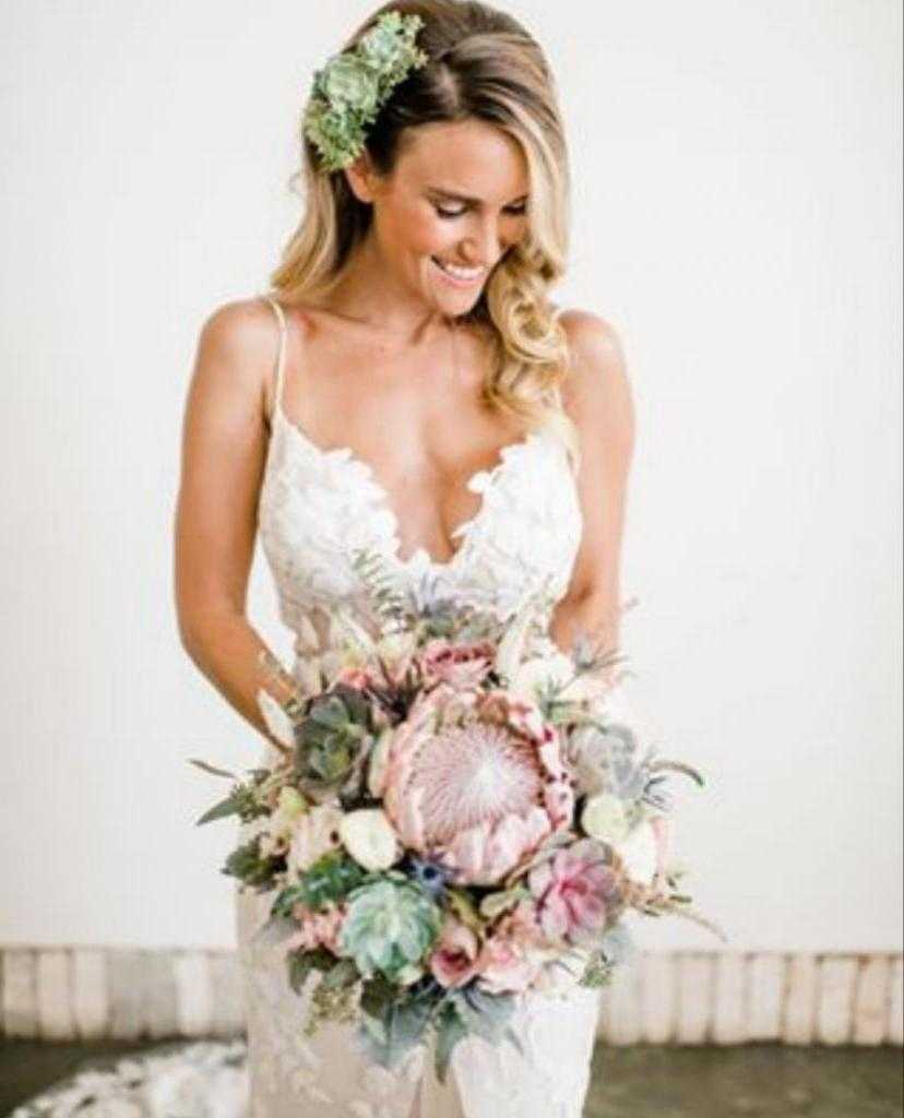 Букет невесты с суккулентами выглядит оригинально и в некоторых случаях даже эпатажно. Прежде чем приступить к его созданию, стоит определиться, будет ли композиция полностью состоять из суккулентов или они будут лишь дополнять букет из садовых растений.