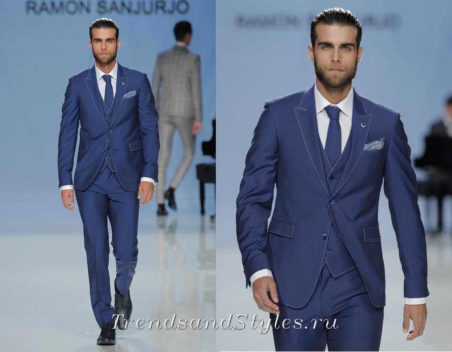 - синий – этот оттенок сейчас находится на пике популярности и его часто стали задействовать женихи и невесты. Он является классическим, а потому хорошо подойдет любому мужчине;