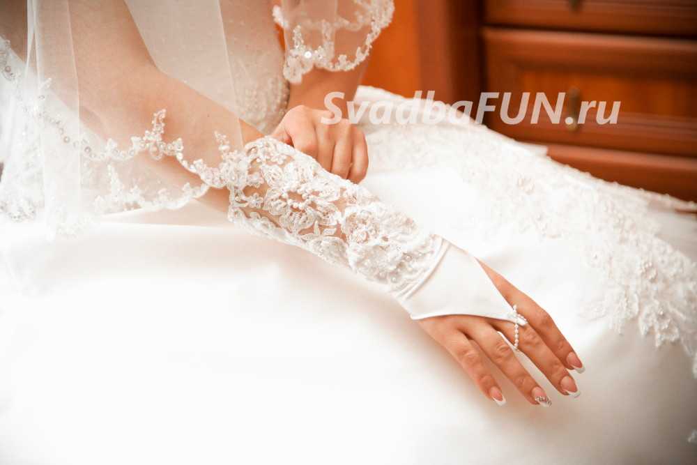 Как найти идеальный вариант? Учтите не только пору года, но и материал платья, ведь перчатки должны гармонировать с вашим подвенечным нарядом. Например, к свадебному платью с кружевными рукавами можно подобрать нежные кружевные перчатки, с декором или без.