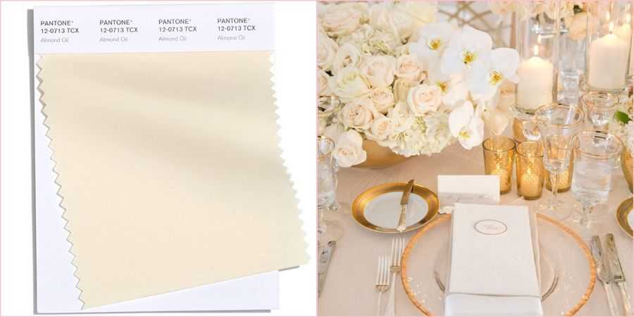 «Almond Oil» или в переводе на русский «Миндальное масло». Нежный, утонченный, мягкий оттенок слоновой кости прекрасно дополнит оформление Вашего праздничного дня. А также станет отличной альтернативой белому цвету.