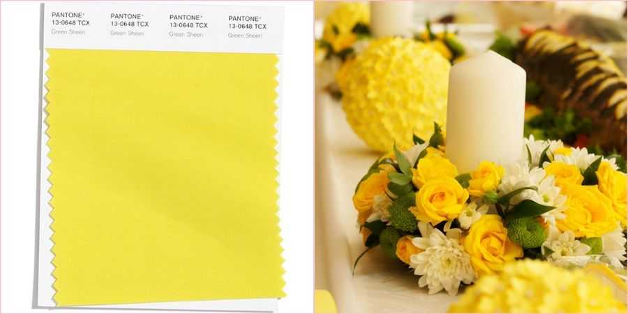 Яркий, сочный, жизнерадостный, дерзкий и смелый – это все желто-лаймовый цвет. «Зеленый блеск» великолепно будет смотреться на осенней свадьбе 2020.