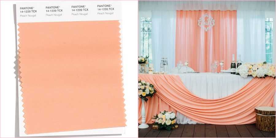 Еще один представитель пастельных красок в нашем списке – «Персиковая нуга». Эта теплая нежно-розовая расцветка с персиковым отливом очень спокойная и мягкая. «Нюдово-розовый» так же, как и «Rose Tan», прекрасный выбор для свадебного наряда невесты.