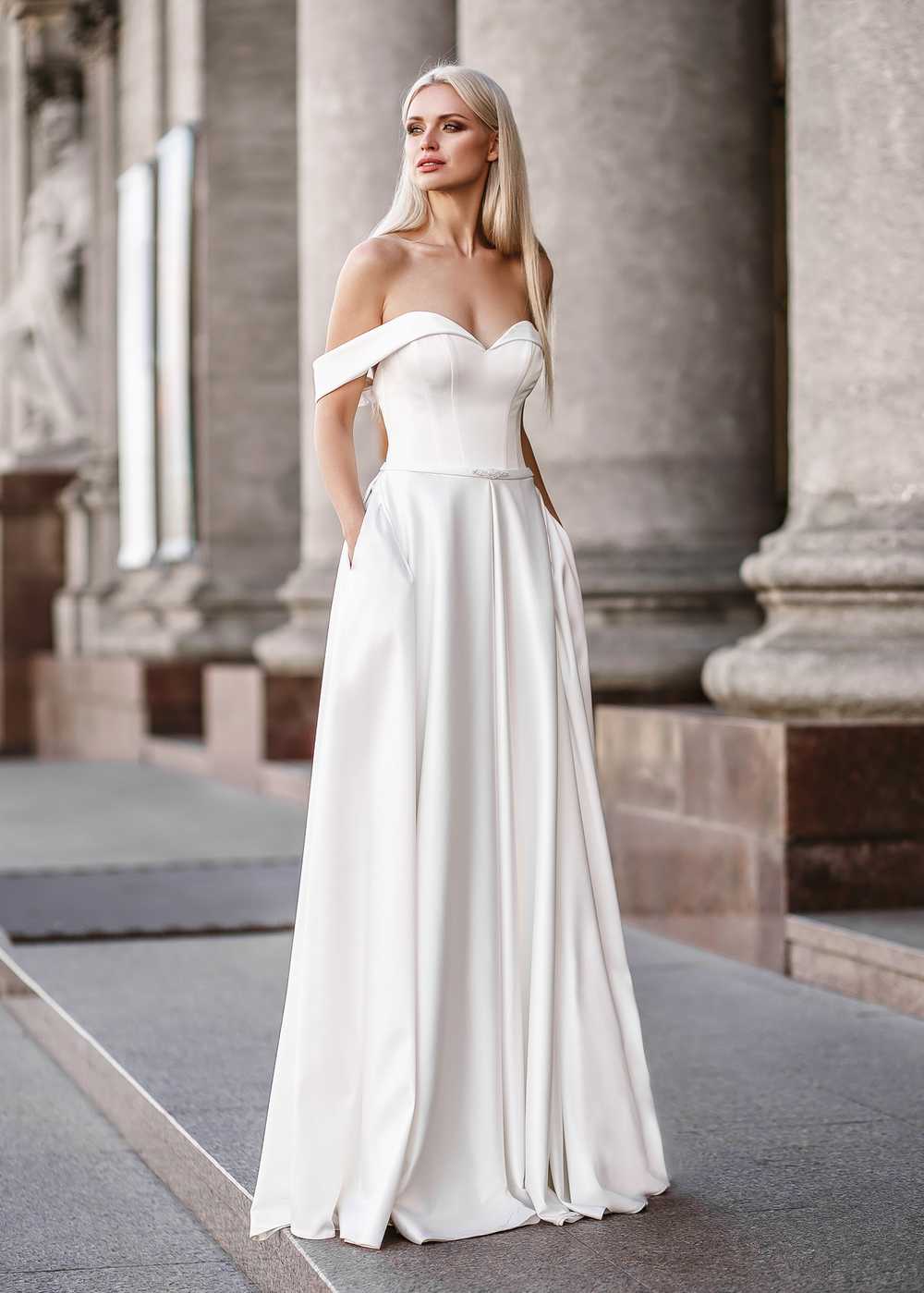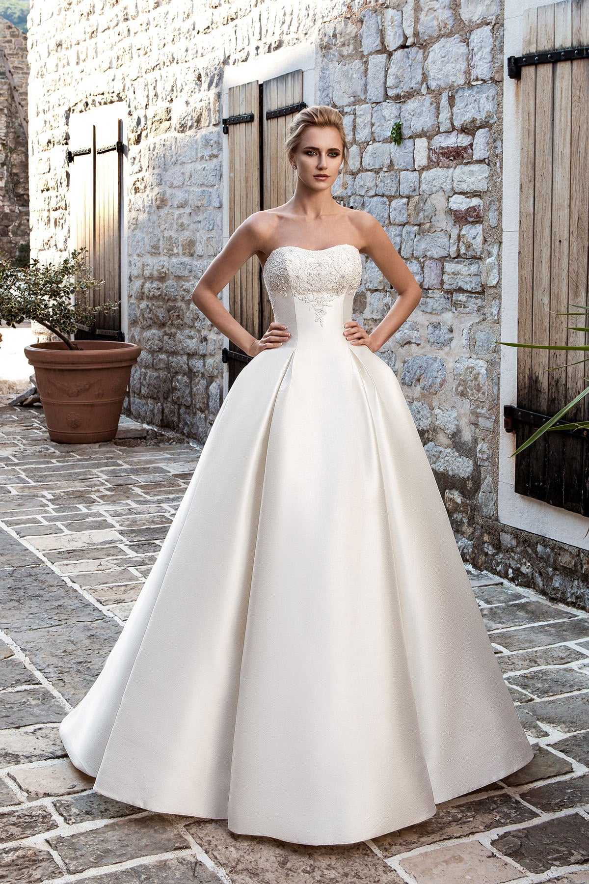 В свежих линейках особую трогательность наряду придает корсетный лиф и наличие тонких бретелей. Вырез может быть прямым, оформленным в форме сердечка, быть с кружевом или также из атласа.