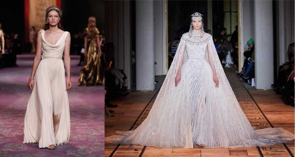 Бывает, модные кутюрье включают в свои коллекции свадебные платья, характерные для более «далёких» эпох, например: