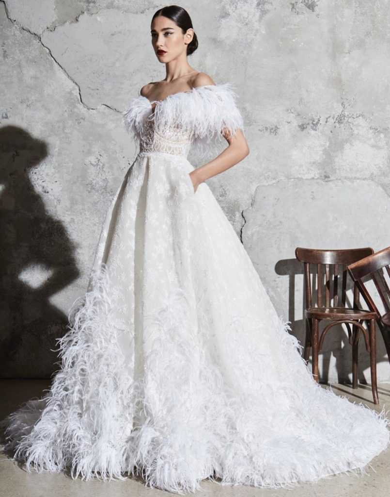 - тенденция к роскоши, которая выражается в богатой отделке платья вышивкой (золотыми нитями, камнями, бисером), изысканных аксессуарах с жемчугом и стразами, дизайнерской фурнитуре;