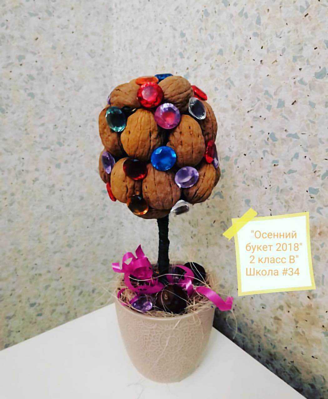Конечно, грецкие орехи не обойдем стороной. Из скорлупок можно сделать осенний топиарий.