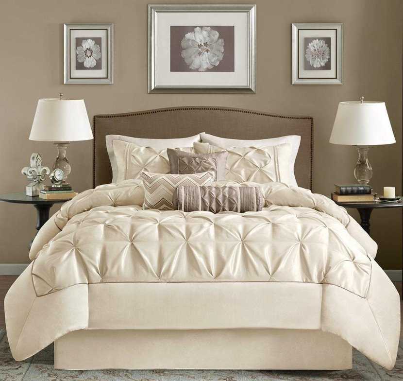 Обратите внимание! Если в маленькую спальню поставить полноценную двуспальную кровать и красиво оформить ее текстилем цвета слоновой кости, она не будет казаться громоздкой, исчезнет ощущение загромождения комнаты. От этого жилое пространство только выиграет.