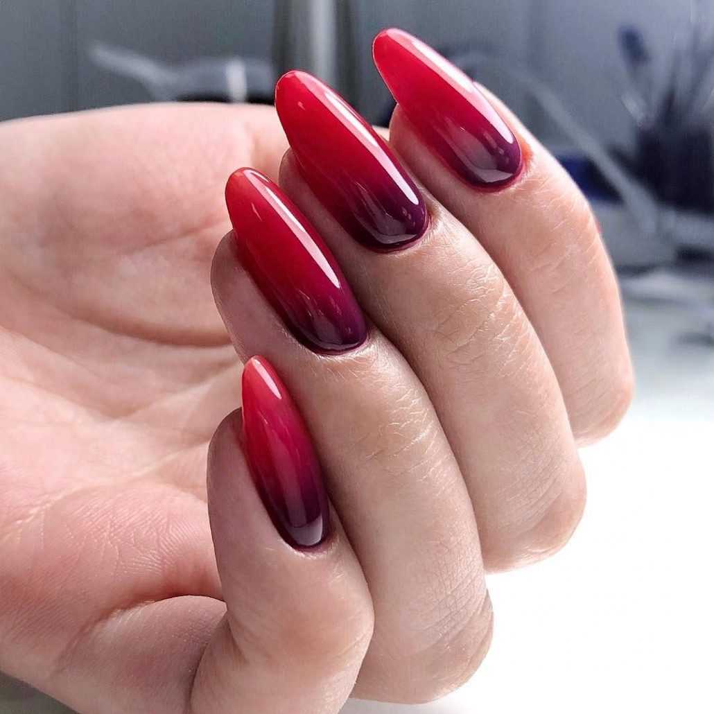 Для соблазнительного нейл-дизайна подойдет такой эффект, как градиент. Плавный переход от темного оттенка к ярко-красному придает ногтям элегантность и стиль. Более легким и свежим будет выглядеть сочетание красного с розовым, оранжевым. В моде градиент с использованием пастельных тонов.